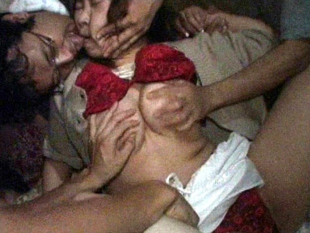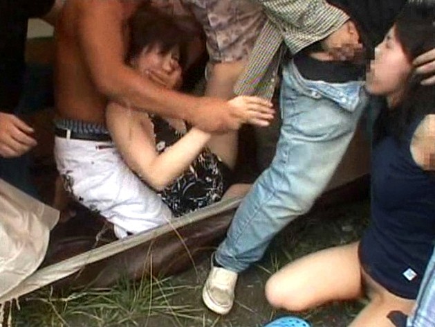 3組目:母娘を森の中で。下着を剥ぎ取り、娘を両足を抱え上げて母親にクンニさせる男達。手マンで潮吹きさせた後、今度は逆に母親を抱え上げて娘にクンニさせる。さらに目の前で手マンして潮吹き。ぐちゃぐちゃになったマンコを再度クンニさせる。