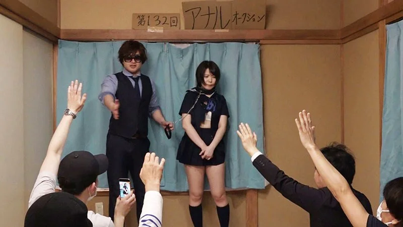 1部シーン:父の借金返済の為に自らの肉体を捧げる舞子。民家の一室でオークション参加者の前で尻を突き出してアナルを見られたり、M字開脚でマンコを見せ、参加者たちは大盛り上がり。肛門、マンコを観察して落札しあう男達。