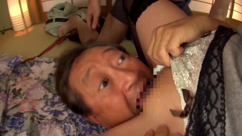 3部シーン:キモいおじさん二人と。貪るようなベロキスをおっさん二人に。膝立ちになるとおじさんが潜り込んで顔騎。下着をずらし一心不乱にマンコを顔騎クンニする。目をかっぴらいて若い女の味を堪能するキモおじ。