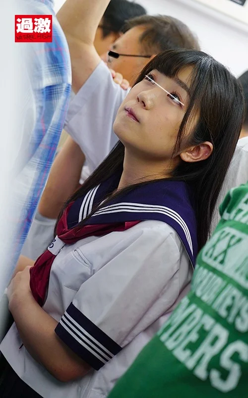 2人目:黒髪JK。電車内で尻を触られ痴漢される。服を脱がされて下着姿になってしまい、乗客の男達に間近でまじまじ体を見られる。男達に体を触られ、下着に手を突っ込まれて愛撫。
