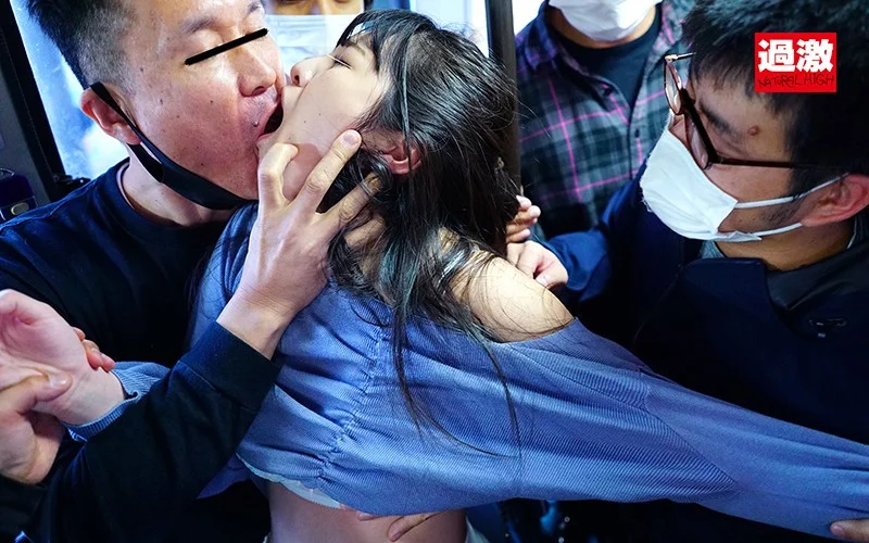 4人目:美尻女子大生。夜のバス車内。無理やり男たちにキスされおっぱい同時舐め。全裸にひん剥かれて立ったまま尻を突き出し、尻を広げられてマンコとアナル接写。